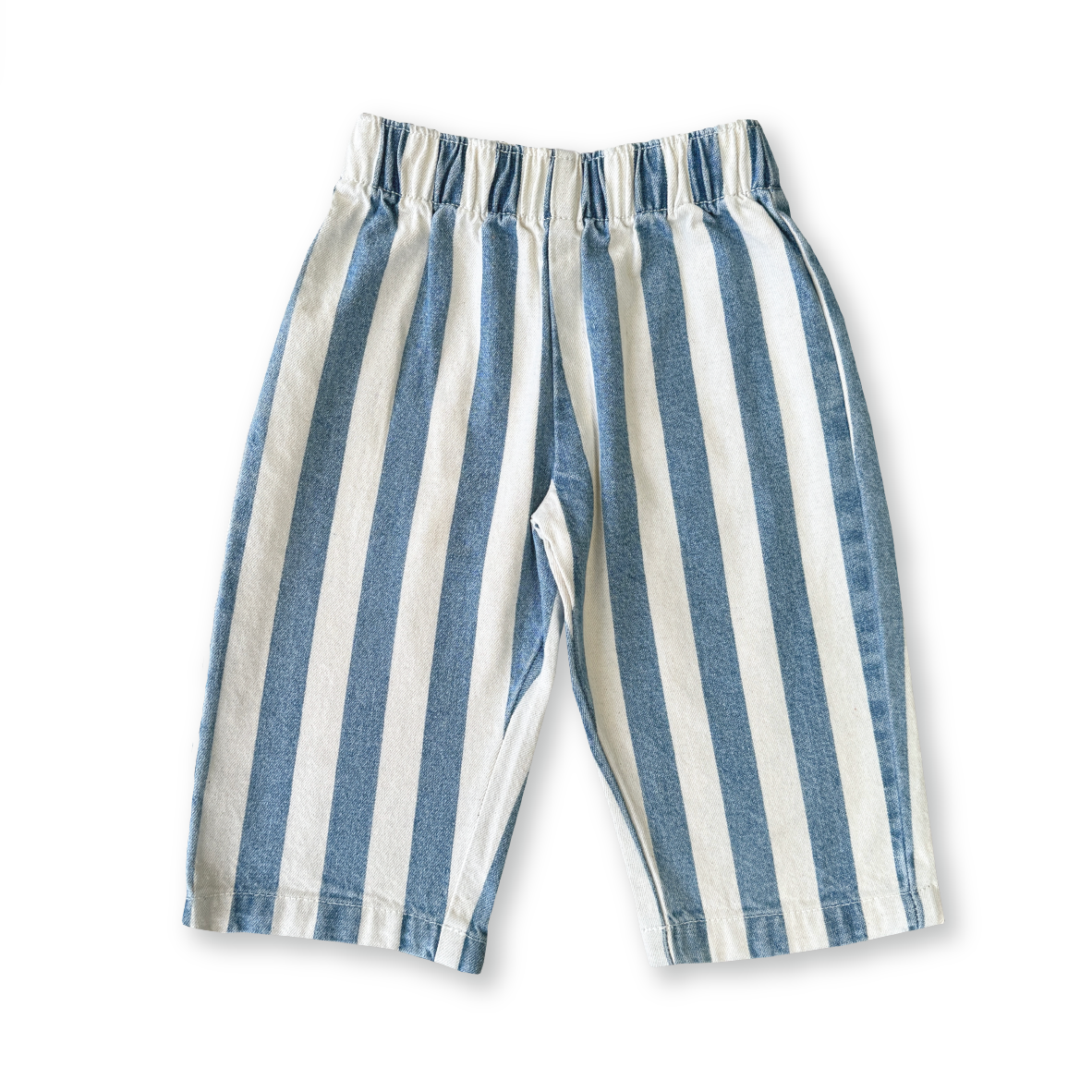 オーバーサイズでリラッスクフィットになっているコットンデニムのストライプパンツ。